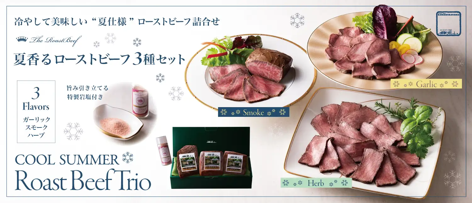 厳選した黒毛和牛を使用した伝統の技と品質へのこだわりが生んだ逸品。塩と胡椒だけで、素材の旨味を引鎌倉山のローストビーフは、黒毛和牛本来の魅力を極限まで引き出した逸品です。1971年創業の歴史と伝統を礎に、熟練の職人が丹精込めて仕上げました。厳選した黒毛和牛サーロインをじっくりと焼き上げ、しっとりとした柔らかさと赤身の旨味を存分にお楽しみいただけます。